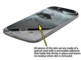 uSkins™ are self adhering vinyl skins that help prevent scratches and look great doing it. Unlike bulky silicon, plastic or metal cases and faceplates, uSkins are designed to be thin and very tough. uSkins are a composite of two layers of commercial grade materials. The bottom layer is a soft, flexible vinyl with a special removable adhesive that is easily positioned, applied without air bubbles, and effortlessly removed without leaving a sticky residue. Next we print the bottom layer with UV protected, fade resistant inks that deliver superb photo quality designs in vibrant colors. Finally we bond a professional grade laminate over the entire skin adding a glossy protective finish.