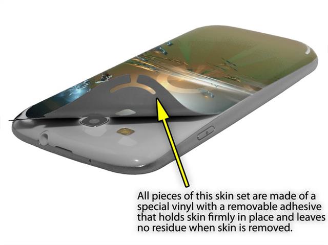 • Decal style vinyl skin covers front and back of Samsung Galaxy S III S3 phone.