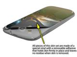 uSkins™ are self adhering vinyl skins that help prevent scratches and look great doing it. Unlike bulky silicon, plastic or metal cases and faceplates, uSkins are designed to be thin and very tough. uSkins are a composite of two layers of commercial grade materials. The bottom layer is a soft, flexible vinyl with a special removable adhesive that is easily positioned, applied without air bubbles, and effortlessly removed without leaving a sticky residue. Next we print the bottom layer with UV protected, fade resistant inks that deliver superb photo quality designs in vibrant colors. Finally we bond a professional grade laminate over the entire skin adding a glossy protective finish.
