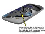 uSkins™ are self adhering vinyl skins that help prevent scratches and look great doing it. Unlike bulky silicon, plastic or metal cases and faceplates, uSkins are designed to be thin and very tough. uSkins are a composite of two layers of commercial grade materials. The bottom layer is a soft, flexible vinyl with a special removable adhesive that is easily positioned, applied without air bubbles, and effortlessly removed without leaving a sticky residue. Next we print the bottom layer with UV protected, fade resistant inks that deliver superb photo quality designs in vibrant colors. Finally we bond a professional grade laminate over the entire skin adding a glossy protective finish.