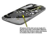 uSkins™ are self adhering vinyl skins that help prevent scratches and look great doing it. Unlike bulky silicon, plastic or metal cases and faceplates, uSkins are designed to be thin and very tough. uSkins are a composite of two layers of commercial grade materials. The bottom layer is a soft, flexible vinyl with a special removable adhesive that is easily positioned, applied without air bubbles, and effortlessly removed without leaving a sticky residue. Next we print the bottom layer with UV protected, fade resistant inks that deliver superb photo quality designs in vibrant colors. Finally we bond a professional grade laminate over the entire skin adding a glossy protective finish.