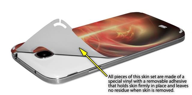 • Decal style vinyl skin covers front and back of Samsung Galaxy S4 phone.