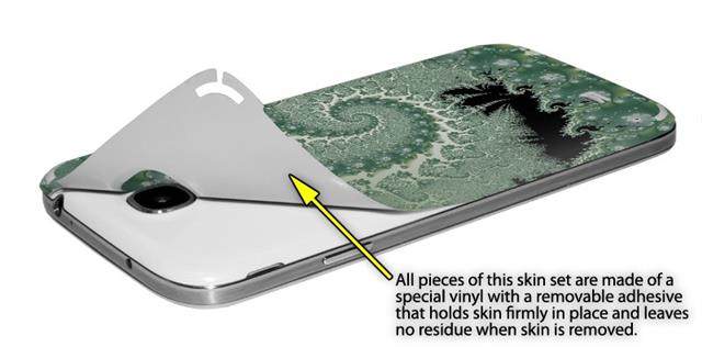 • Decal style vinyl skin covers front and back of Samsung Galaxy S4 phone.