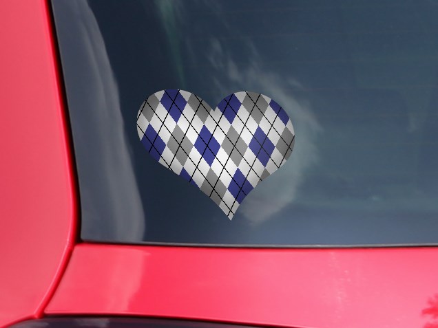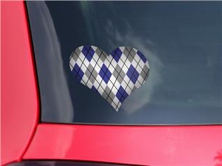 Argyle Blue and Gray - I Heart Love Car Window Decal 6.5 x 5.5 inches
