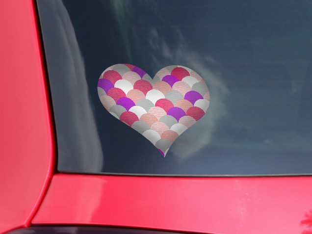 Brushed Circles Pink - I Heart Love Car Window Decal 6.5 x 5.5 inches