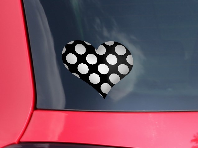 Kearas Polka Dots White On Black - I Heart Love Car Window Decal 6.5 x 5.5 inches