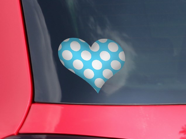 Kearas Polka Dots White And Blue - I Heart Love Car Window Decal 6.5 x 5.5 inches
