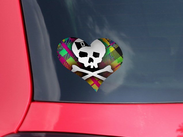 Rainbow Plaid Skull - I Heart Love Car Window Decal 6.5 x 5.5 inches