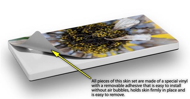 uSkins™ are self adhering vinyl skins that help prevent scratches and look great doing it. Unlike bulky silicon, plastic or metal cases and faceplates, uSkins are designed to be thin and very tough. uSkins are a composite of two layers of commercial grade materials. The bottom layer is a soft, flexible vinyl with a special removable adhesive that is easily positioned, applied without air bubbles, and effortlessly removed without leaving a sticky residue. Next we print the bottom layer with UV protected, fade resistant inks that deliver superb photo quality designs in vibrant colors. Finally we bond a professional grade laminate over the entire skin adding a glossy protective finish.