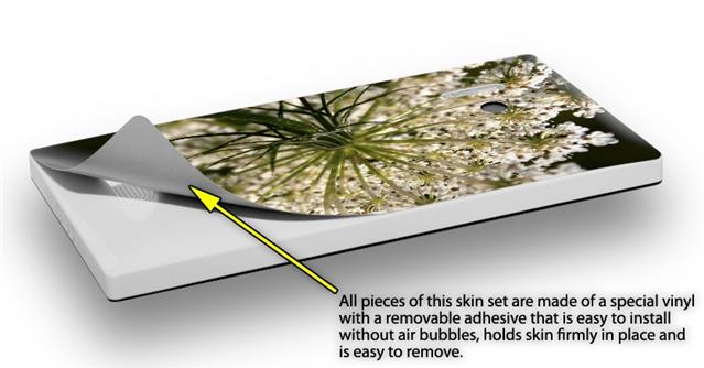 uSkins™ are self adhering vinyl skins that help prevent scratches and look great doing it. Unlike bulky silicon, plastic or metal cases and faceplates, uSkins are designed to be thin and very tough. uSkins are a composite of two layers of commercial grade materials. The bottom layer is a soft, flexible vinyl with a special removable adhesive that is easily positioned, applied without air bubbles, and effortlessly removed without leaving a sticky residue. Next we print the bottom layer with UV protected, fade resistant inks that deliver superb photo quality designs in vibrant colors. Finally we bond a professional grade laminate over the entire skin adding a glossy protective finish.