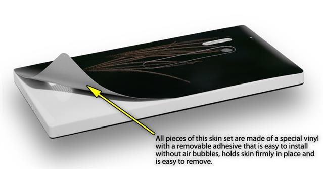 uSkins™ are self adhering vinyl skins that help prevent scratches and look great doing it. Unlike bulky silicon, plastic or metal cases and faceplates, uSkins are designed to be thin and very tough. uSkins are a composite of two layers of commercial grade materials. The bottom layer is a soft, flexible vinyl with a special removable adhesive that is easily positioned, applied without air bubbles, and effortlessly removed without leaving a sticky residue. Next we print the bottom layer with UV protected, fade resistant inks that deliver superb photo quality designs in vibrant colors. Finally we bond a professional grade laminate over the entire skin adding a glossy protective finish.
