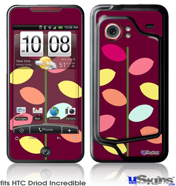 HTC Droid Incredible Skin - Plain Leaves On Burgundy