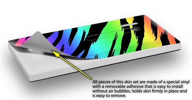 uSkins™ are self adhering vinyl skins that help prevent scratches and look great doing it. Unlike bulky silicon, plastic or metal cases and faceplates, uSkins are designed to be thin and very tough. uSkins are a composite of two layers of commercial grade materials. The bottom layer is a soft, flexible vinyl with a special removable adhesive that is easily positioned, applied without air bubbles, and effortlessly removed without leaving a sticky residue. Next we print the bottom layer with UV protected, fade resistant inks that deliver superb photo quality designs in vibrant colors. Finally we bond a professional grade laminate over the entire skin adding a glossy protective finish.