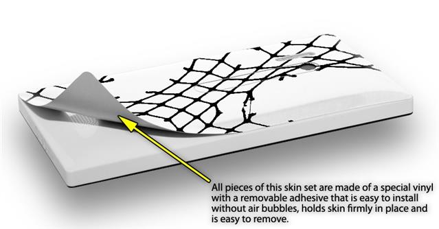 uSkins™ are self adhering vinyl skins that help prevent scratches and look great doing it. Unlike bulky silicon, plastic or metal cases and faceplates, uSkins are designed to be thin and very tough. uSkins are a composite of two layers of commercial grade materials. The bottom layer is a soft, flexible vinyl with a special removable adhesive that is easily positioned, applied without air bubbles, and effortlessly removed without leaving a sticky residue. Next we print the bottom layer with UV protected, fade resistant inks that deliver superb photo quality designs in vibrant colors. Finally we bond a professional grade laminate over the entire skin adding a glossy protective finish.