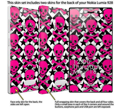 Pink Skulls and Stars - Decal Style Skin (fits Nokia Lumia 928)