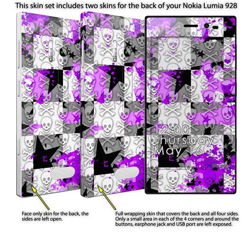 Purple Checker Skull Splatter - Decal Style Skin (fits Nokia Lumia 928)