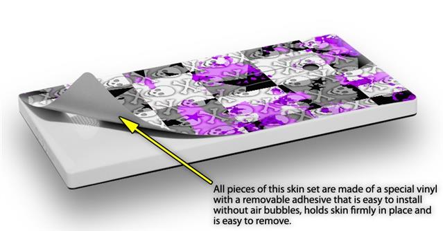 uSkins™ are self adhering vinyl skins that help prevent scratches and look great doing it. Unlike bulky silicon, plastic or metal cases and faceplates, uSkins are designed to be thin and very tough. uSkins are a composite of two layers of commercial grade materials. The bottom layer is a soft, flexible vinyl with a special removable adhesive that is easily positioned, applied without air bubbles, and effortlessly removed without leaving a sticky residue. Next we print the bottom layer with UV protected, fade resistant inks that deliver superb photo quality designs in vibrant colors. Finally we bond a professional grade laminate over the entire skin adding a glossy protective finish.