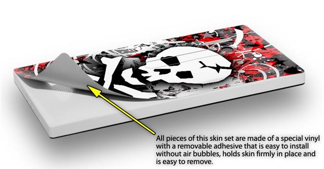 uSkins™ are self adhering vinyl skins that help prevent scratches and look great doing it. Unlike bulky silicon, plastic or metal cases and faceplates, uSkins are designed to be thin and very tough. uSkins are a composite of two layers of commercial grade materials. The bottom layer is a soft, flexible vinyl with a special removable adhesive that is easily positioned, applied without air bubbles, and effortlessly removed without leaving a sticky residue. Next we print the bottom layer with UV protected, fade resistant inks that deliver superb photo quality designs in vibrant colors. Finally we bond a professional grade laminate over the entire skin adding a glossy protective finish.