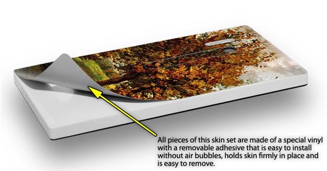 uSkins™ are self adhering vinyl skins that help prevent scratches and look great doing it. Unlike bulky silicon, plastic or metal cases and faceplates, uSkins are designed to be thin and very tough. uSkins are a composite of two layers of commercial grade materials. The bottom layer is a soft, flexible vinyl with a special removable adhesive that is easily positioned, applied without air bubbles, and effortlessly removed without leaving a sticky residue. Next we print the bottom layer with UV protected, fade resistant inks that deliver superb photo quality designs in vibrant colors. Finally we bond a professional grade laminate over the entire skin adding a glossy protective finish.