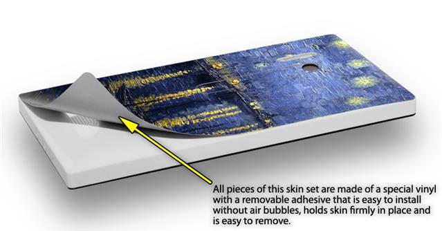 uSkins™ are self adhering vinyl skins that help prevent scratches and look great doing it. Unlike bulky silicon, plastic or metal cases and faceplates, uSkins are designed to be thin and very tough. uSkins are a composite of two layers of commercial grade materials. The bottom layer is a soft, flexible vinyl with a special removable adhesive that is easily positioned, applied without air bubbles, and effortlessly removed without leaving a sticky residue. Next we print the bottom layer with UV protected, fade resistant inks that deliver superb photo quality designs in vibrant colors. Finally we bond a professional grade laminate over the entire skin adding a glossy protective finish.