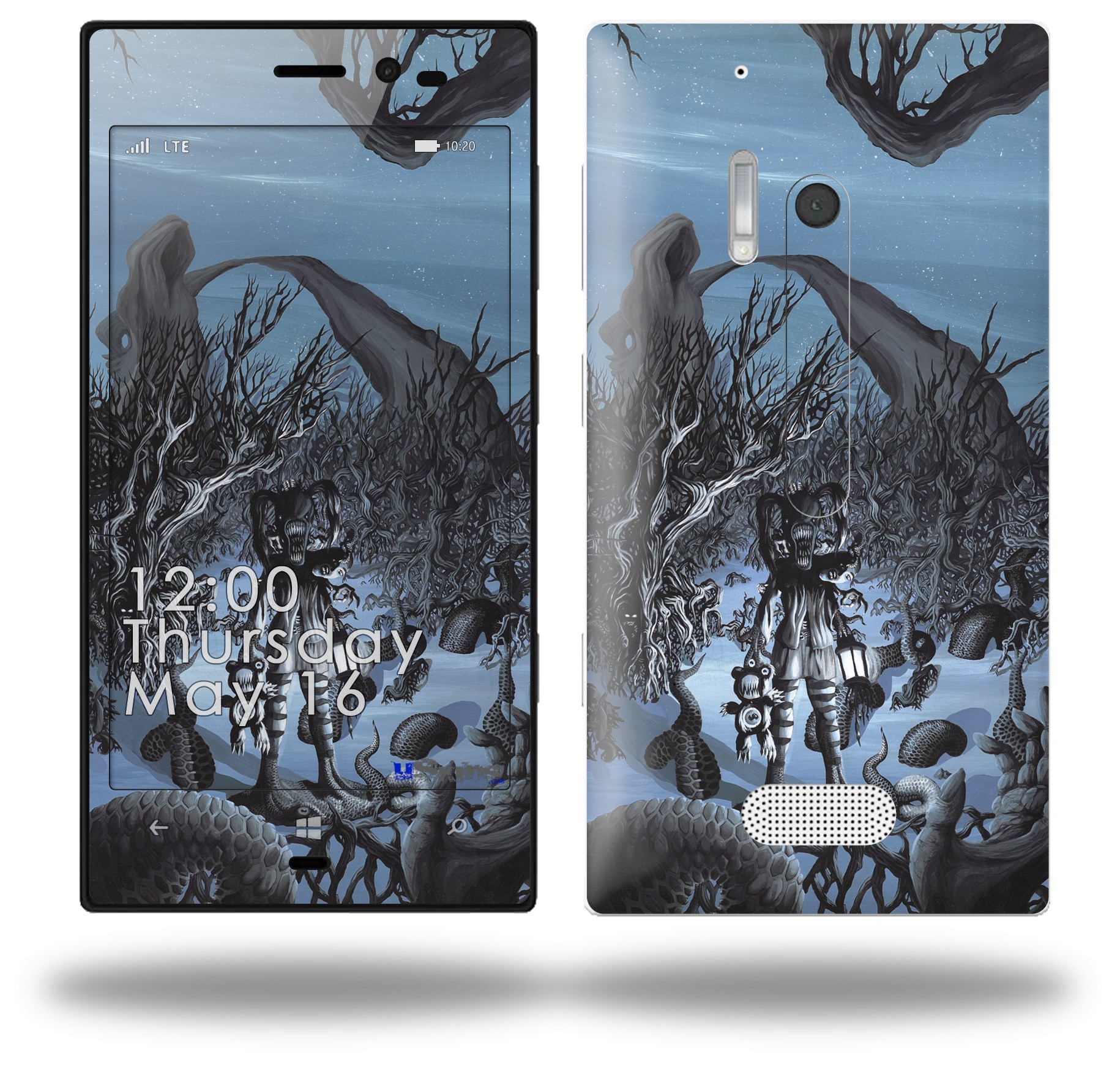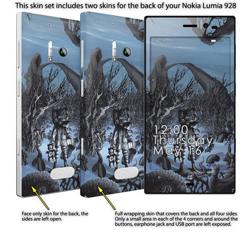 • Decal style vinyl skin covers front, back and side of Nokia Lumia 928 phone.