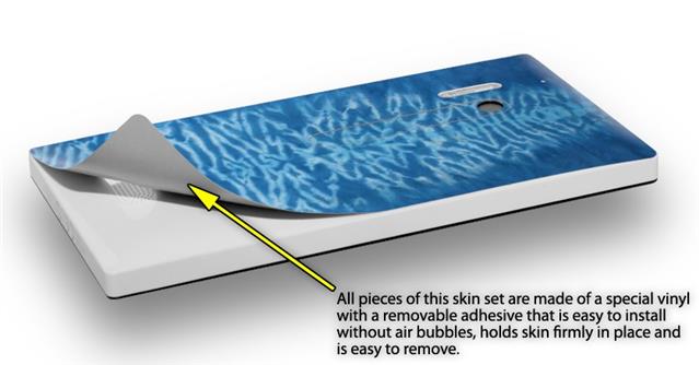 uSkins™ are self adhering vinyl skins that help prevent scratches and look great doing it. Unlike bulky silicon, plastic or metal cases and faceplates, uSkins are designed to be thin and very tough. uSkins are a composite of two layers of commercial grade materials. The bottom layer is a soft, flexible vinyl with a special removable adhesive that is easily positioned, applied without air bubbles, and effortlessly removed without leaving a sticky residue. Next we print the bottom layer with UV protected, fade resistant inks that deliver superb photo quality designs in vibrant colors. Finally we bond a professional grade laminate over the entire skin adding a glossy protective finish.