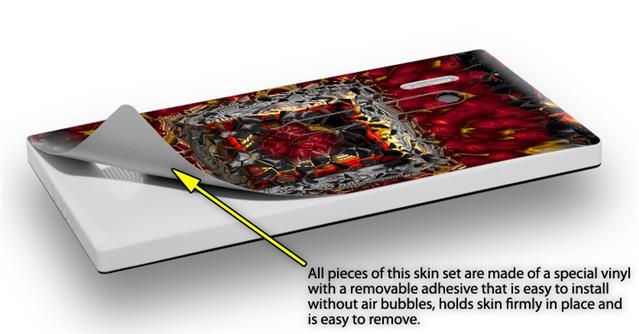 uSkins™ are self adhering vinyl skins that help prevent scratches and look great doing it. Unlike bulky silicon, plastic or metal cases and faceplates, uSkins are designed to be thin and very tough. uSkins are a composite of two layers of commercial grade materials. The bottom layer is a soft, flexible vinyl with a special removable adhesive that is easily positioned, applied without air bubbles, and effortlessly removed without leaving a sticky residue. Next we print the bottom layer with UV protected, fade resistant inks that deliver superb photo quality designs in vibrant colors. Finally we bond a professional grade laminate over the entire skin adding a glossy protective finish.