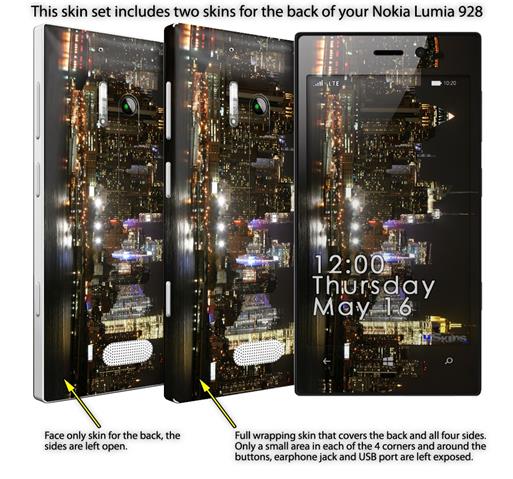 • Decal style vinyl skin covers front, back and side of Nokia Lumia 928 phone.