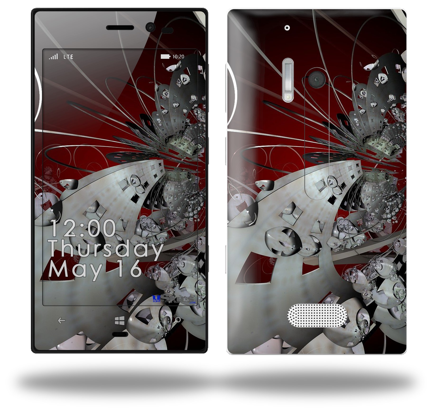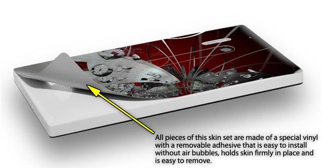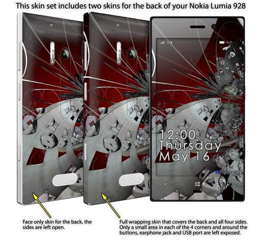 • Decal style vinyl skin covers front, back and side of Nokia Lumia 928 phone.