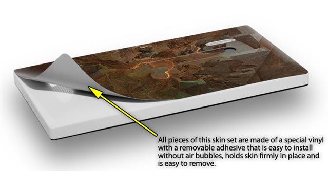 uSkins™ are self adhering vinyl skins that help prevent scratches and look great doing it. Unlike bulky silicon, plastic or metal cases and faceplates, uSkins are designed to be thin and very tough. uSkins are a composite of two layers of commercial grade materials. The bottom layer is a soft, flexible vinyl with a special removable adhesive that is easily positioned, applied without air bubbles, and effortlessly removed without leaving a sticky residue. Next we print the bottom layer with UV protected, fade resistant inks that deliver superb photo quality designs in vibrant colors. Finally we bond a professional grade laminate over the entire skin adding a glossy protective finish.