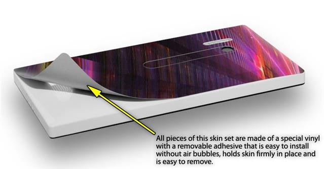 uSkins™ are self adhering vinyl skins that help prevent scratches and look great doing it. Unlike bulky silicon, plastic or metal cases and faceplates, uSkins are designed to be thin and very tough. uSkins are a composite of two layers of commercial grade materials. The bottom layer is a soft, flexible vinyl with a special removable adhesive that is easily positioned, applied without air bubbles, and effortlessly removed without leaving a sticky residue. Next we print the bottom layer with UV protected, fade resistant inks that deliver superb photo quality designs in vibrant colors. Finally we bond a professional grade laminate over the entire skin adding a glossy protective finish.