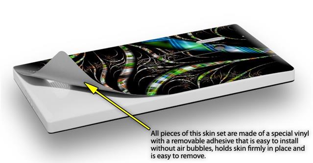 uSkins™ are self adhering vinyl skins that help prevent scratches and look great doing it. Unlike bulky silicon, plastic or metal cases and faceplates, uSkins are designed to be thin and very tough. uSkins are a composite of two layers of commercial grade materials. The bottom layer is a soft, flexible vinyl with a special removable adhesive that is easily positioned, applied without air bubbles, and effortlessly removed without leaving a sticky residue. Next we print the bottom layer with UV protected, fade resistant inks that deliver superb photo quality designs in vibrant colors. Finally we bond a professional grade laminate over the entire skin adding a glossy protective finish.