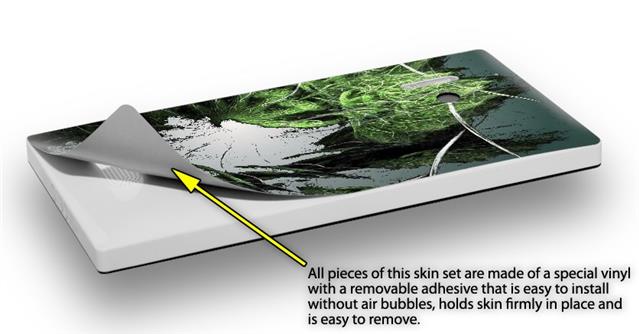 uSkins™ are self adhering vinyl skins that help prevent scratches and look great doing it. Unlike bulky silicon, plastic or metal cases and faceplates, uSkins are designed to be thin and very tough. uSkins are a composite of two layers of commercial grade materials. The bottom layer is a soft, flexible vinyl with a special removable adhesive that is easily positioned, applied without air bubbles, and effortlessly removed without leaving a sticky residue. Next we print the bottom layer with UV protected, fade resistant inks that deliver superb photo quality designs in vibrant colors. Finally we bond a professional grade laminate over the entire skin adding a glossy protective finish.