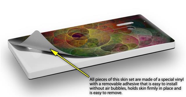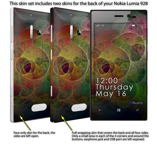 • Decal style vinyl skin covers front, back and side of Nokia Lumia 928 phone.