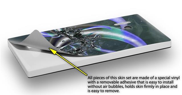 uSkins™ are self adhering vinyl skins that help prevent scratches and look great doing it. Unlike bulky silicon, plastic or metal cases and faceplates, uSkins are designed to be thin and very tough. uSkins are a composite of two layers of commercial grade materials. The bottom layer is a soft, flexible vinyl with a special removable adhesive that is easily positioned, applied without air bubbles, and effortlessly removed without leaving a sticky residue. Next we print the bottom layer with UV protected, fade resistant inks that deliver superb photo quality designs in vibrant colors. Finally we bond a professional grade laminate over the entire skin adding a glossy protective finish.