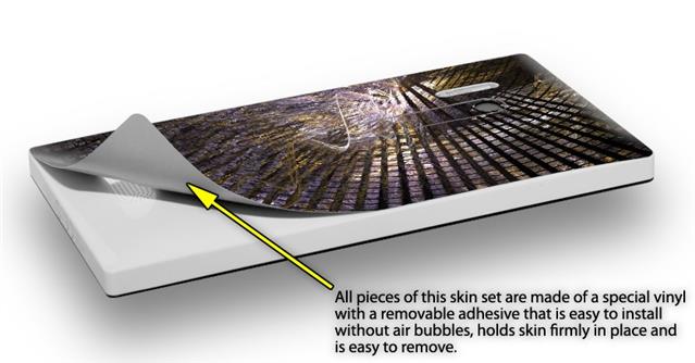 uSkins™ are self adhering vinyl skins that help prevent scratches and look great doing it. Unlike bulky silicon, plastic or metal cases and faceplates, uSkins are designed to be thin and very tough. uSkins are a composite of two layers of commercial grade materials. The bottom layer is a soft, flexible vinyl with a special removable adhesive that is easily positioned, applied without air bubbles, and effortlessly removed without leaving a sticky residue. Next we print the bottom layer with UV protected, fade resistant inks that deliver superb photo quality designs in vibrant colors. Finally we bond a professional grade laminate over the entire skin adding a glossy protective finish.