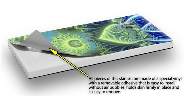 uSkins™ are self adhering vinyl skins that help prevent scratches and look great doing it. Unlike bulky silicon, plastic or metal cases and faceplates, uSkins are designed to be thin and very tough. uSkins are a composite of two layers of commercial grade materials. The bottom layer is a soft, flexible vinyl with a special removable adhesive that is easily positioned, applied without air bubbles, and effortlessly removed without leaving a sticky residue. Next we print the bottom layer with UV protected, fade resistant inks that deliver superb photo quality designs in vibrant colors. Finally we bond a professional grade laminate over the entire skin adding a glossy protective finish.