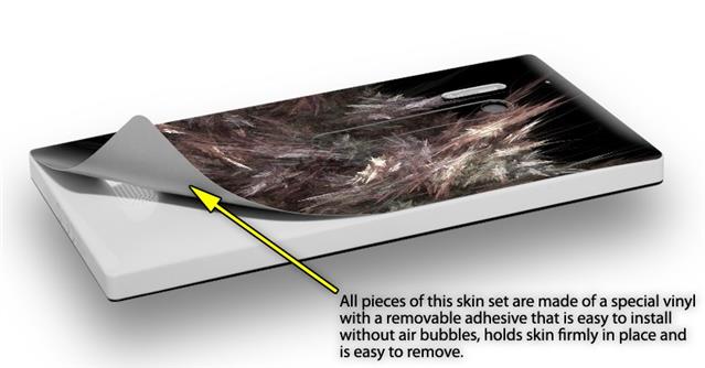 uSkins™ are self adhering vinyl skins that help prevent scratches and look great doing it. Unlike bulky silicon, plastic or metal cases and faceplates, uSkins are designed to be thin and very tough. uSkins are a composite of two layers of commercial grade materials. The bottom layer is a soft, flexible vinyl with a special removable adhesive that is easily positioned, applied without air bubbles, and effortlessly removed without leaving a sticky residue. Next we print the bottom layer with UV protected, fade resistant inks that deliver superb photo quality designs in vibrant colors. Finally we bond a professional grade laminate over the entire skin adding a glossy protective finish.