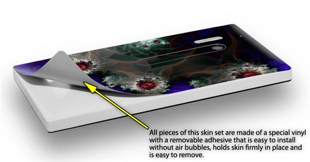 uSkins™ are self adhering vinyl skins that help prevent scratches and look great doing it. Unlike bulky silicon, plastic or metal cases and faceplates, uSkins are designed to be thin and very tough. uSkins are a composite of two layers of commercial grade materials. The bottom layer is a soft, flexible vinyl with a special removable adhesive that is easily positioned, applied without air bubbles, and effortlessly removed without leaving a sticky residue. Next we print the bottom layer with UV protected, fade resistant inks that deliver superb photo quality designs in vibrant colors. Finally we bond a professional grade laminate over the entire skin adding a glossy protective finish.