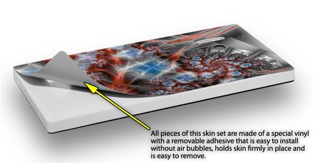 uSkins™ are self adhering vinyl skins that help prevent scratches and look great doing it. Unlike bulky silicon, plastic or metal cases and faceplates, uSkins are designed to be thin and very tough. uSkins are a composite of two layers of commercial grade materials. The bottom layer is a soft, flexible vinyl with a special removable adhesive that is easily positioned, applied without air bubbles, and effortlessly removed without leaving a sticky residue. Next we print the bottom layer with UV protected, fade resistant inks that deliver superb photo quality designs in vibrant colors. Finally we bond a professional grade laminate over the entire skin adding a glossy protective finish.