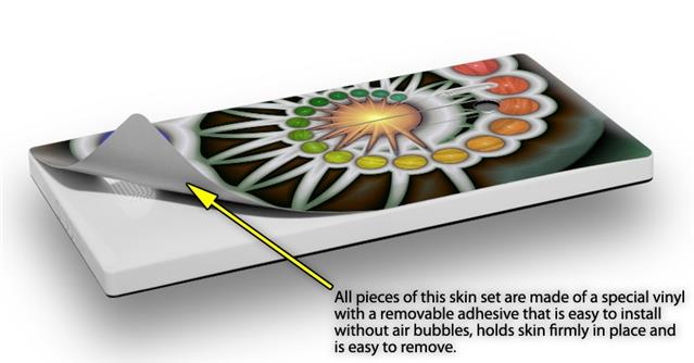 uSkins™ are self adhering vinyl skins that help prevent scratches and look great doing it. Unlike bulky silicon, plastic or metal cases and faceplates, uSkins are designed to be thin and very tough. uSkins are a composite of two layers of commercial grade materials. The bottom layer is a soft, flexible vinyl with a special removable adhesive that is easily positioned, applied without air bubbles, and effortlessly removed without leaving a sticky residue. Next we print the bottom layer with UV protected, fade resistant inks that deliver superb photo quality designs in vibrant colors. Finally we bond a professional grade laminate over the entire skin adding a glossy protective finish.