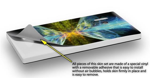 uSkins™ are self adhering vinyl skins that help prevent scratches and look great doing it. Unlike bulky silicon, plastic or metal cases and faceplates, uSkins are designed to be thin and very tough. uSkins are a composite of two layers of commercial grade materials. The bottom layer is a soft, flexible vinyl with a special removable adhesive that is easily positioned, applied without air bubbles, and effortlessly removed without leaving a sticky residue. Next we print the bottom layer with UV protected, fade resistant inks that deliver superb photo quality designs in vibrant colors. Finally we bond a professional grade laminate over the entire skin adding a glossy protective finish.