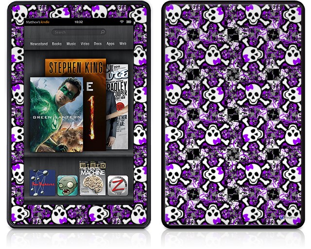 Amazon Kindle Fire (Original) Decal Style Skin - Splatter Girly Skull Purple