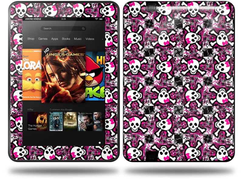 Splatter Girly Skull Pink Decal Style Skin fits Amazon Kindle Fire HD 8.9 inch