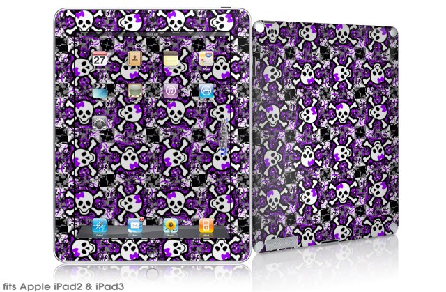 iPad Skin - Splatter Girly Skull Purple (fits iPad2 and iPad3)