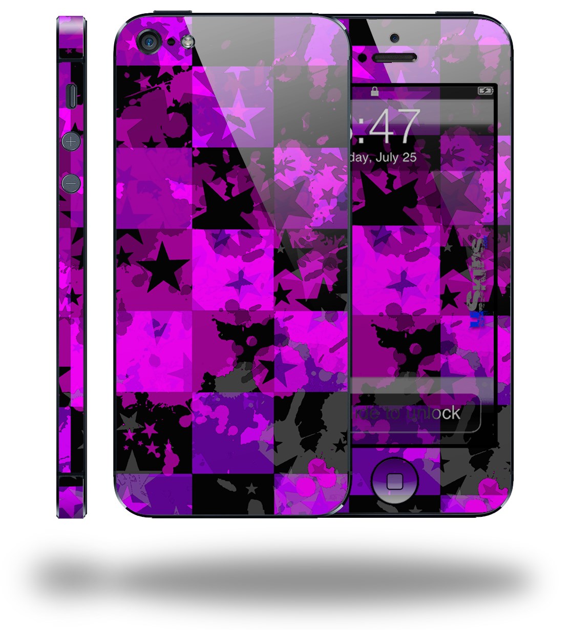 Purple Star Checkerboard - Decal Style Vinyl Skin (fits Apple Original iPhone 5, NOT the iPhone 5C or 5S)