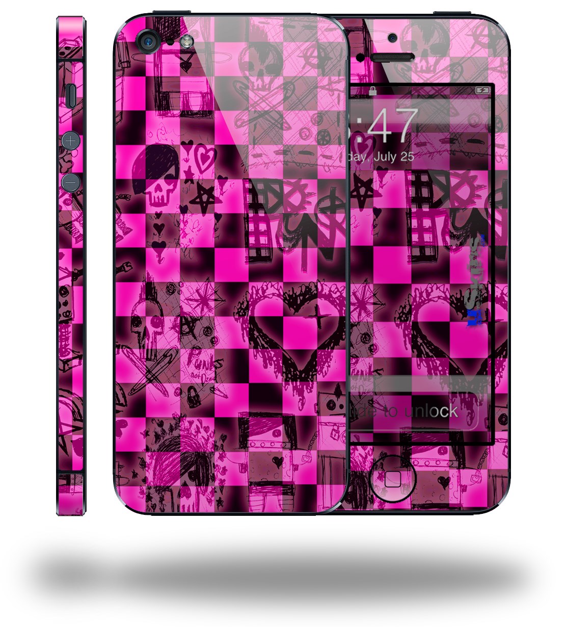 Pink Checkerboard Sketches - Decal Style Vinyl Skin (fits Apple Original iPhone 5, NOT the iPhone 5C or 5S)