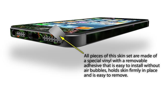 uSkins™ are self adhering vinyl skins that help prevent scratches and look great doing it. Unlike bulky silicon, plastic or metal cases and faceplates, uSkins are designed to be thin and very tough. uSkins are a composite of two layers of commercial grade materials. The bottom layer is a soft, flexible vinyl with a special removable adhesive that is easily positioned, applied without air bubbles, and effortlessly removed without leaving a sticky residue. Next we print the bottom layer with UV protected, fade resistant inks that deliver superb photo quality designs in vibrant colors. Finally we bond a professional grade laminate over the entire skin adding a glossy protective finish.