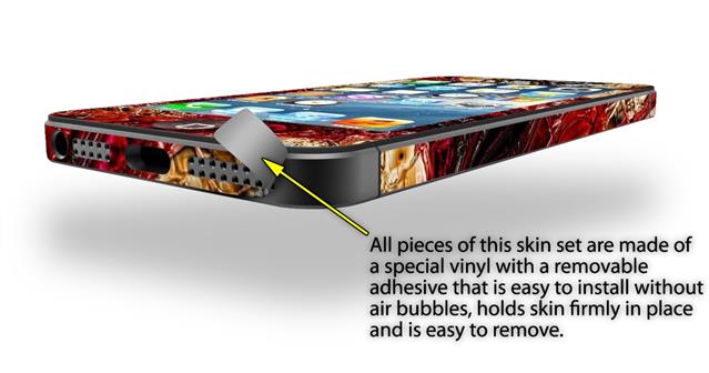 uSkins™ are self adhering vinyl skins that help prevent scratches and look great doing it. Unlike bulky silicon, plastic or metal cases and faceplates, uSkins are designed to be thin and very tough. uSkins are a composite of two layers of commercial grade materials. The bottom layer is a soft, flexible vinyl with a special removable adhesive that is easily positioned, applied without air bubbles, and effortlessly removed without leaving a sticky residue. Next we print the bottom layer with UV protected, fade resistant inks that deliver superb photo quality designs in vibrant colors. Finally we bond a professional grade laminate over the entire skin adding a glossy protective finish.