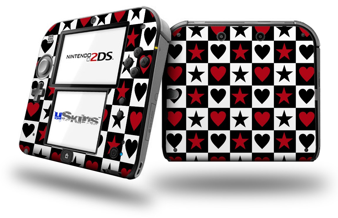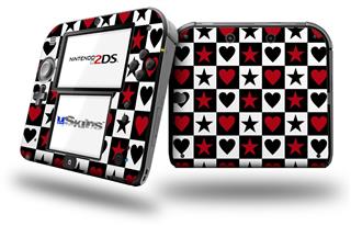 Hearts and Stars Red - Decal Style Vinyl Skin fits Nintendo 2DS - 2DS NOT INCLUDED